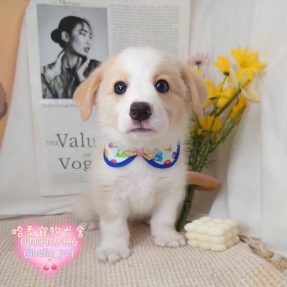 聰明黃白邊境牧羊犬寶寶