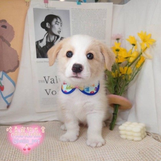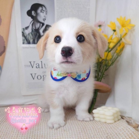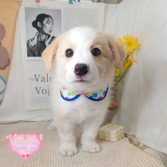 聰明黃白邊境牧羊犬寶寶